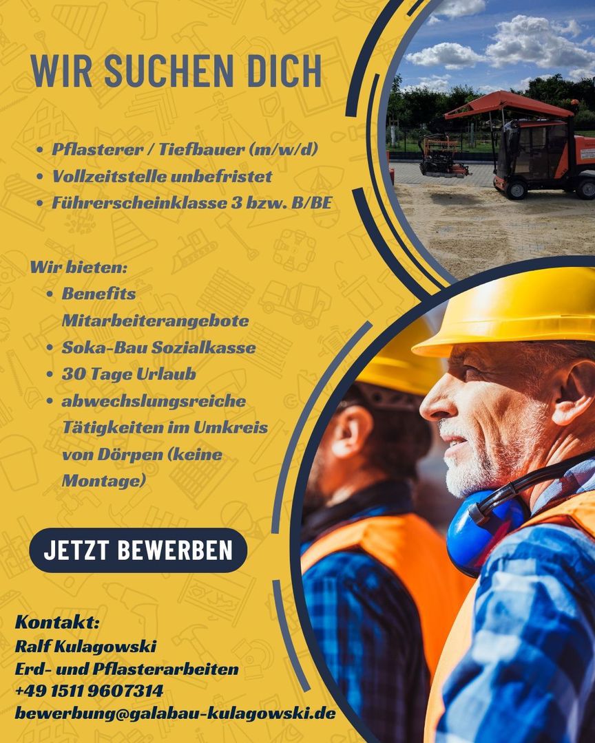 Bewerbungen bitte telefonisch unter Tel. 015119607314 oder an bewerbung@galabau-kulagowski.de